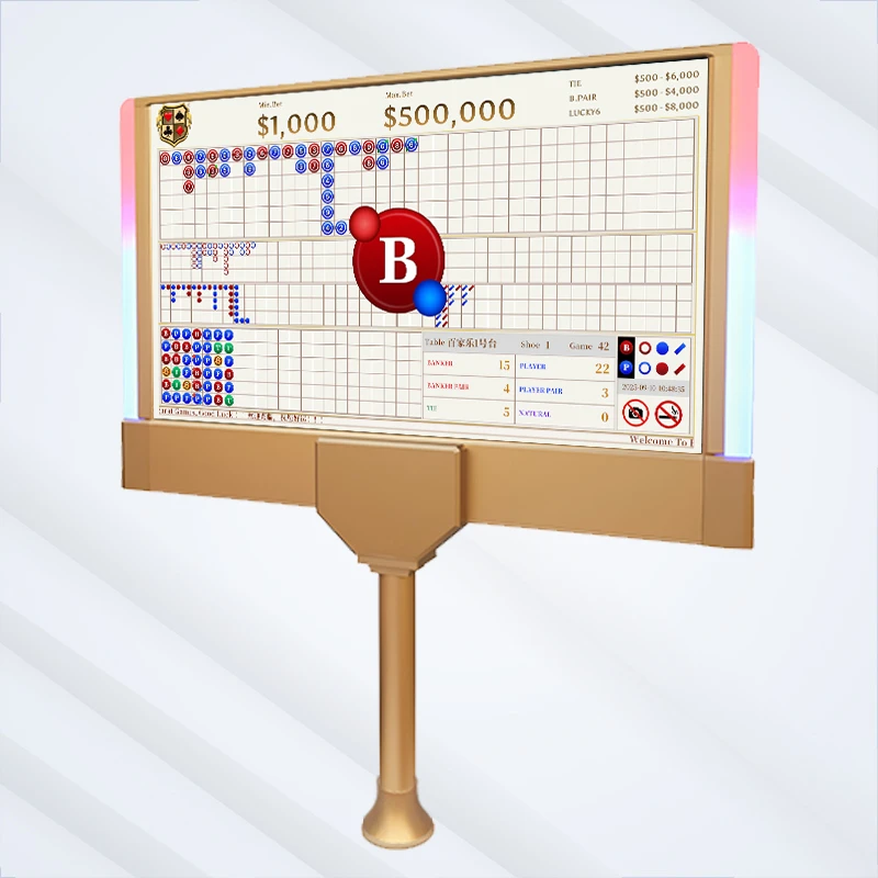 In the high-stakes world of live Baccarat (Punto Banco), the Baccarat Display — also known as the Electronic Baccarat Roadmap Display, Casino Baccarat Scoreboard, or Baccarat Winning Number Display — is far more than just a screen. It’s the heartbeat of every premium table. A crystal-clear, real-time Baccarat Display System that shows the full suite of roads (Bead Plate, Big Road, Big Eye Boy, Small Road, and Cockroach Pig) directly influences player dwell time, side-bet frequency (Pair, Dragon Bonus, Super Six), and overall table revenue.